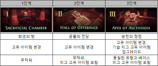 3단계의 승천의 정점에서는 '바알 종합체'에게서 얻는 '시약'으로 기습 리그 고유 아이템을 업그레이드 할 수 있습니다.