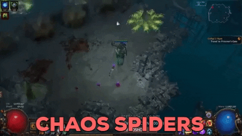 이 기둥은 영역 전체를 뒤덮는 거미를 방출하며 카오스 피해를 입힙니다.