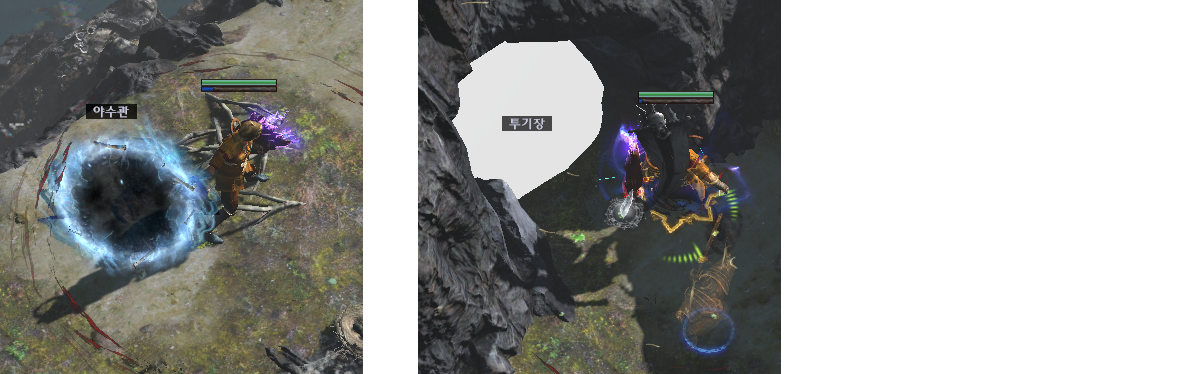 하수인들이 추가적으로 소환되며 화면 전체가 흐릿해지며 곧바로 다음 영역으로 도착합니다.