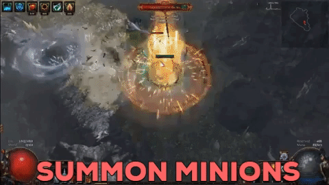 꽤 넓은 범위의 충격파를 방출하여 피해를 입히고 자신의 하수인들을 소환하는 공격입니다.