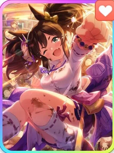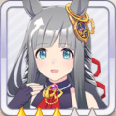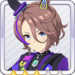 · 고유기 : 레이스 중간 부근에서 중위권 그룹에 있으면 속도 상승 + 마일(0.45), 나카야마 2500m 팬 수 146738명 이상(0.55)