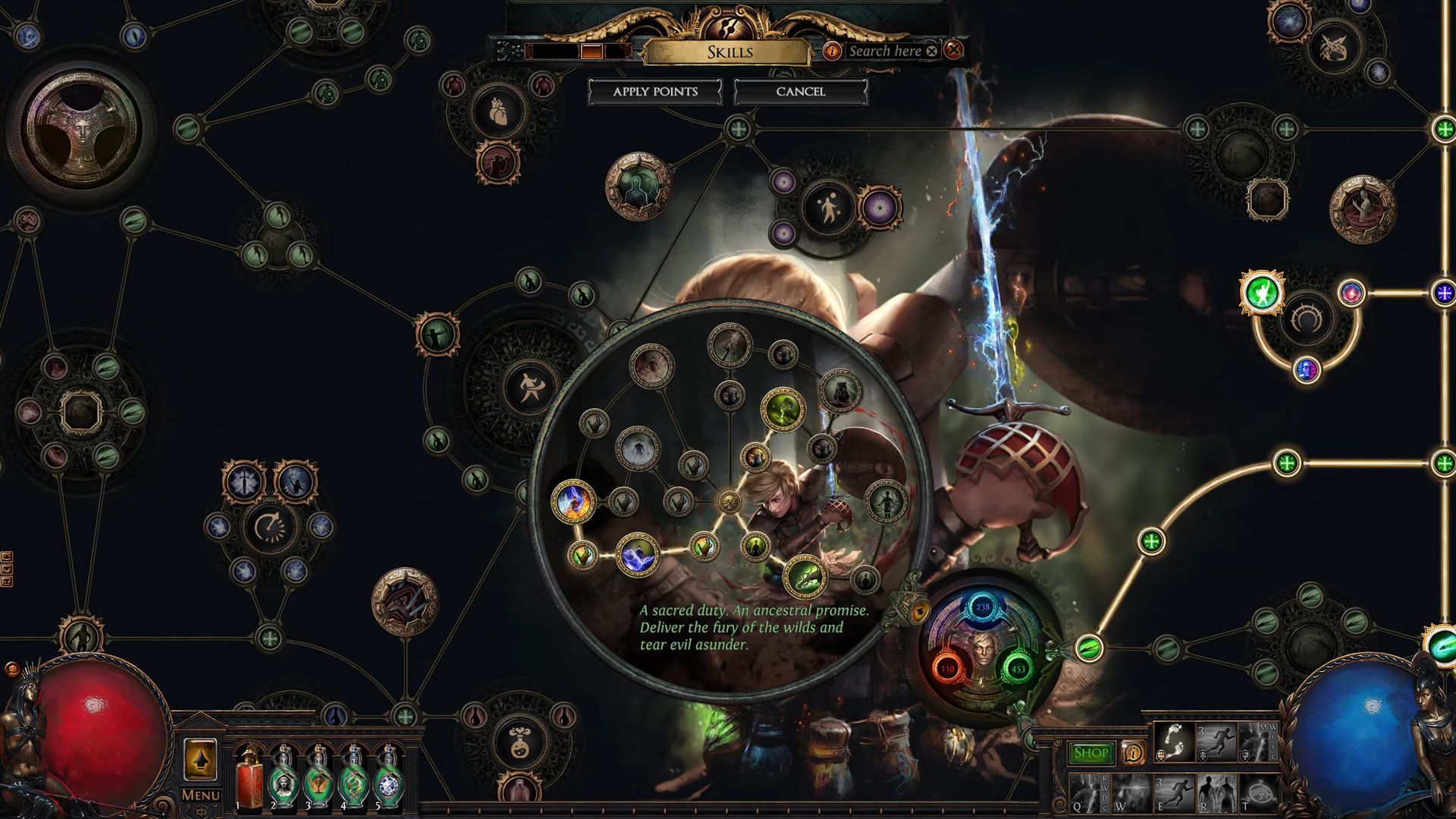- 패시브 스킬 트리 : 머라우더 근처 노드에 저항 최대치 추가, 인내 충전으로 얻게 되는 원소 피해 완화와 중첩.