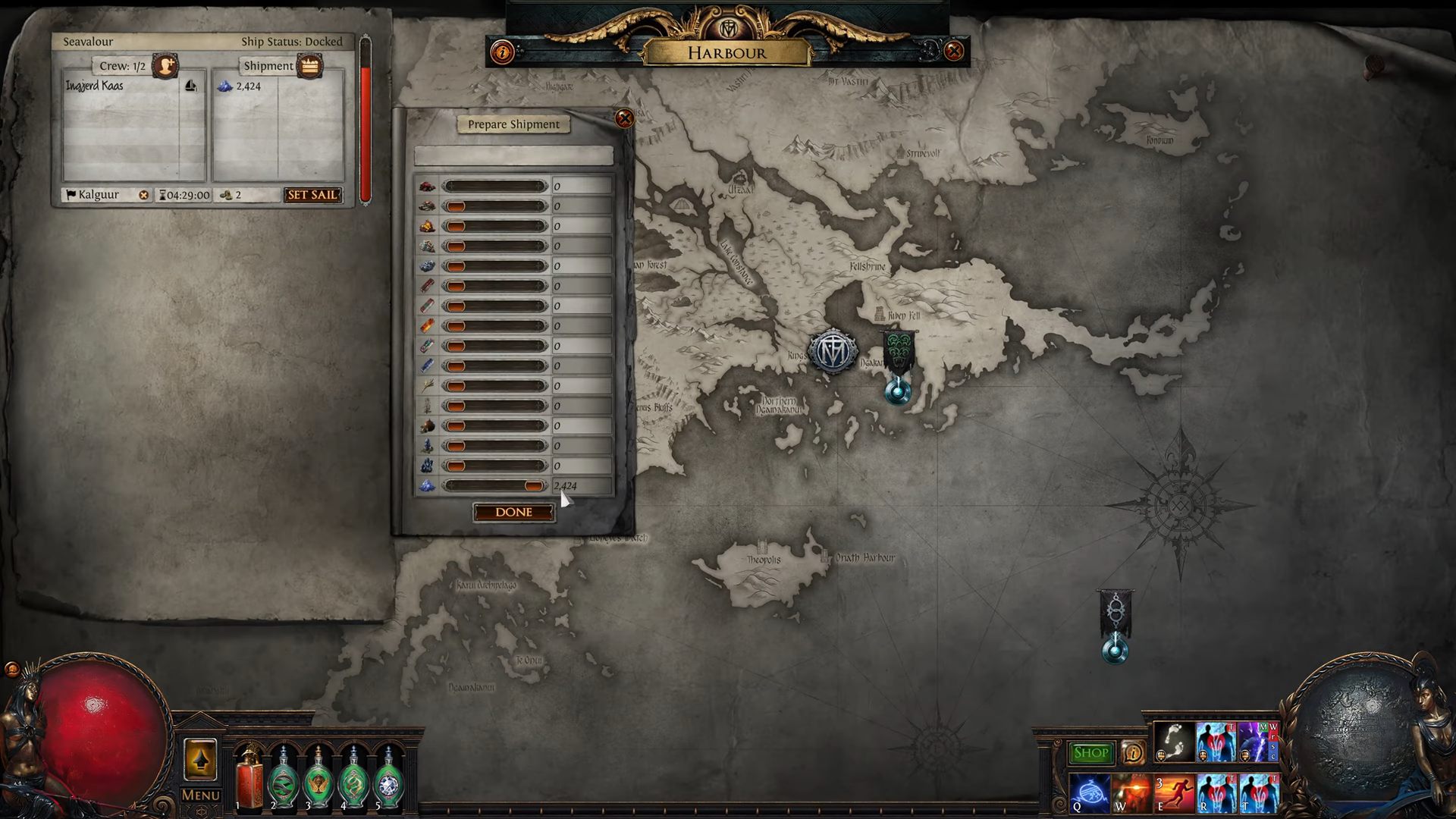 - 교역하고자 하는 항구를 선택하고 쌓아왔던 마을의 자원을 배에 실은 다음 출항시킬 수 있다.