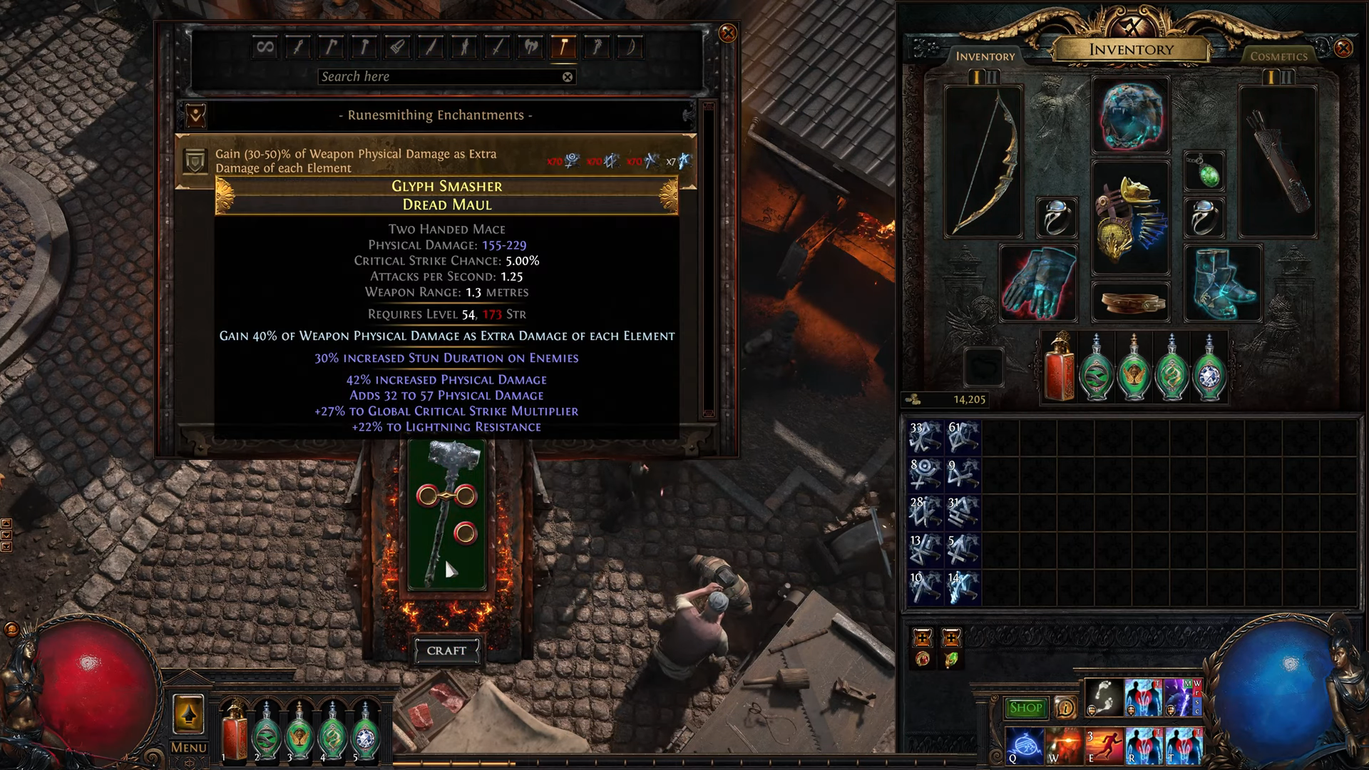 - 룬 제작대 : 다양한 룬의 종류와 조합을 선택, 무기에 인챈트 형태로 적용할 수 있는 제작.