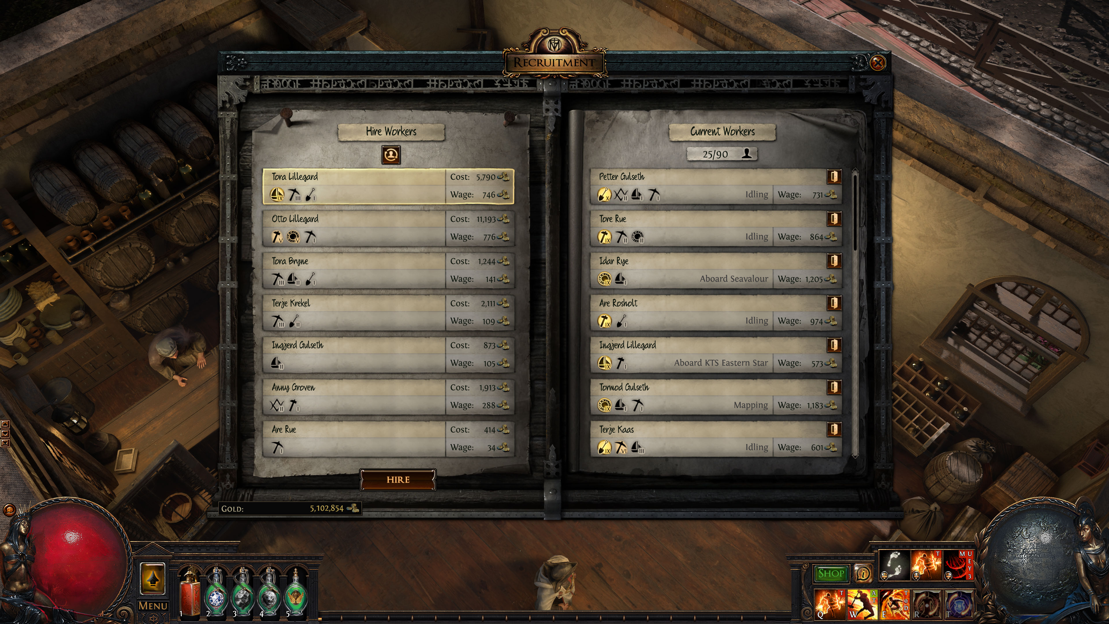 - 일꾼마다 특기와 봉급이 다르며 자유롭게 고용과 해고 가능.