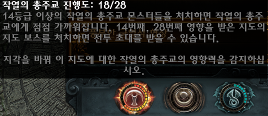마지막으로 작열의 총주교의 영향을 받은 16등급 지도의 고유 보스를 처치하고 '백열하는 초대'를 획득.