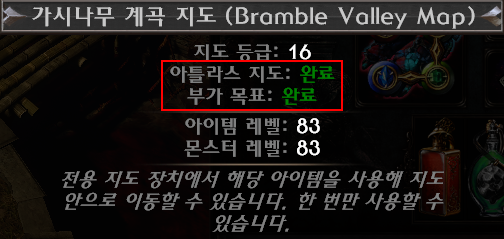아틀라스 지도는 지도 보스를 처치해서 아틀라스 지도에는 등록이 되었다는 것, 즉 중요한 부가 목표는 완료하지 않았다는 뜻이다.