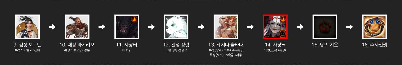 권장 스펙 기준 : 층진 10강, 천선변다문, 사신셋, 바반쌍, 중남 저깍 = 14-15초