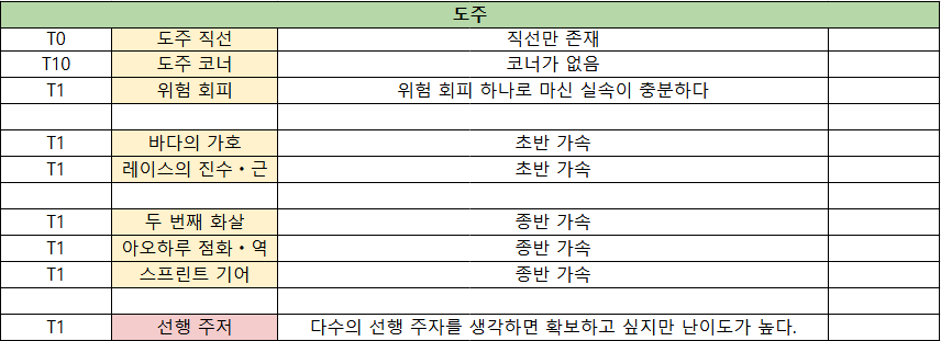 T1 : 이 스킬을 확보하지 못할 경우 수완가, 거리 S를 받더라도 주자를 다시 깎아야 한다고 생각하는 고 밸류