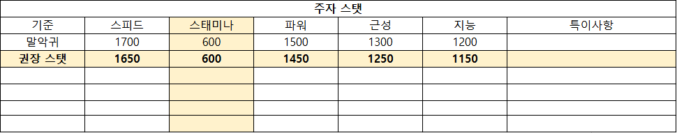 권장 스탯