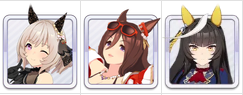 - 공용 : 우마무스메 마니아 > 컨센트레이션(서포트 풀이 충분할 시) > 한줄기 질풍 > 꼬리 솟구쳐 오르기 > 두근대는 하트