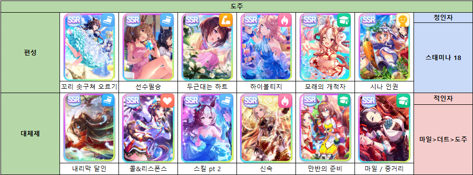 - 도주 서포터 편성은 아마도 이 세팅이 극 고점이라고 생각, 렌탈은 쓰팔콘을 적극적으로 권장하고 싶다.