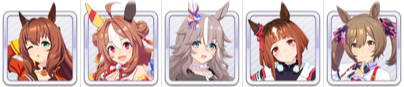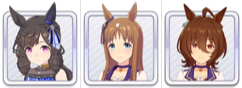 - 메지로 라모누 : 뒤방, 정면승부를 내장. 무난한 느낌이지만 더트 개조를 할 정도로 내보낼 주자인가는 의문