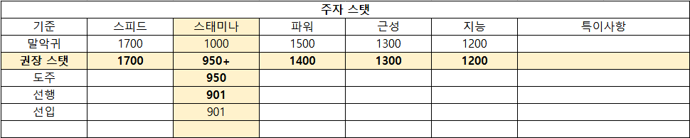 - 최대한 스태미나 인자를 중심으로 확보할 수 있도록 노력하자